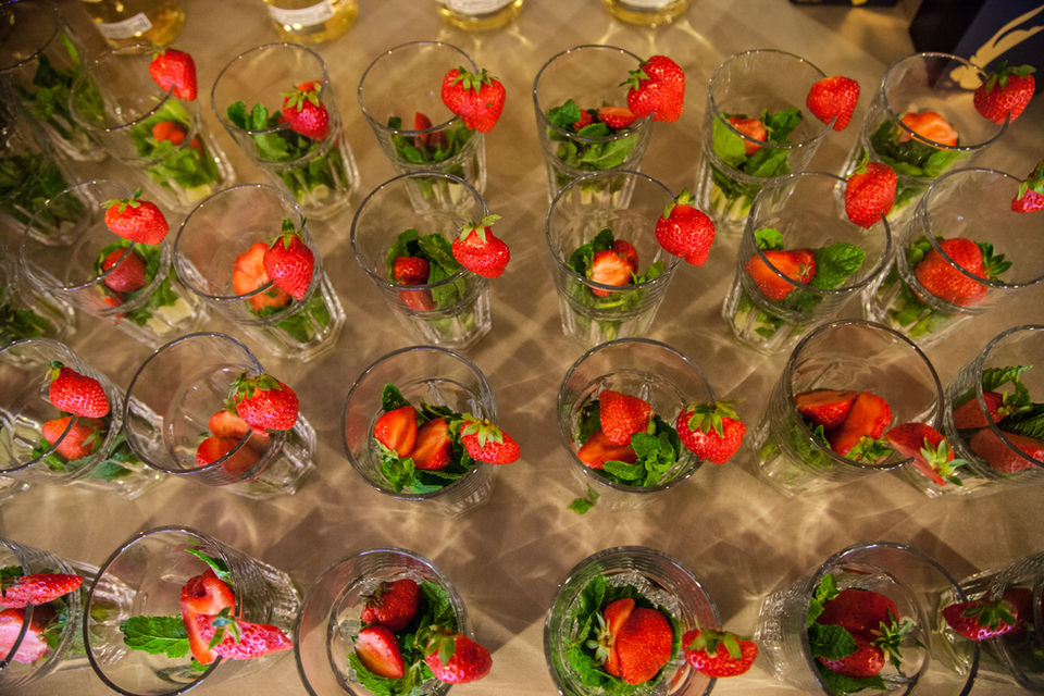 Rhum Havana 3 ans, citron vert, fraises fraîche, feuilles de menthe, eau minérale gazeuse, sucre